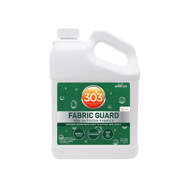 303 High Tech Fabric Guard to najlepsza ochrona tkanin na świecie. Zastosowanie: meble ogrodowe, markizy, parasole, poszycia łodzi, dachy cabrio, wyściółki, dywany, odzież przeciwdeszczowa, namioty, wyposażenie narciarskie, jedwab, zamsz.